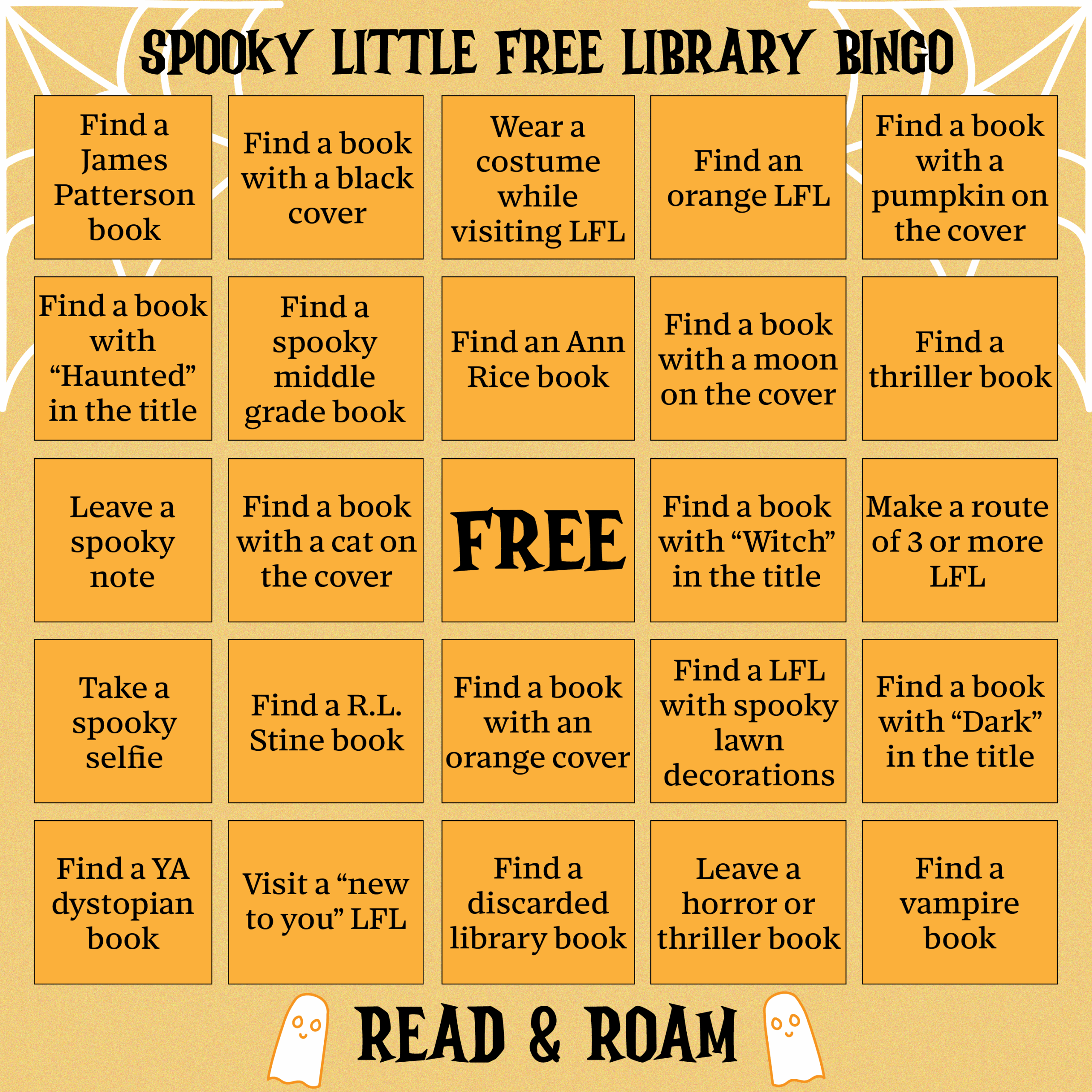 Spooky Little Free Library Bingo Card